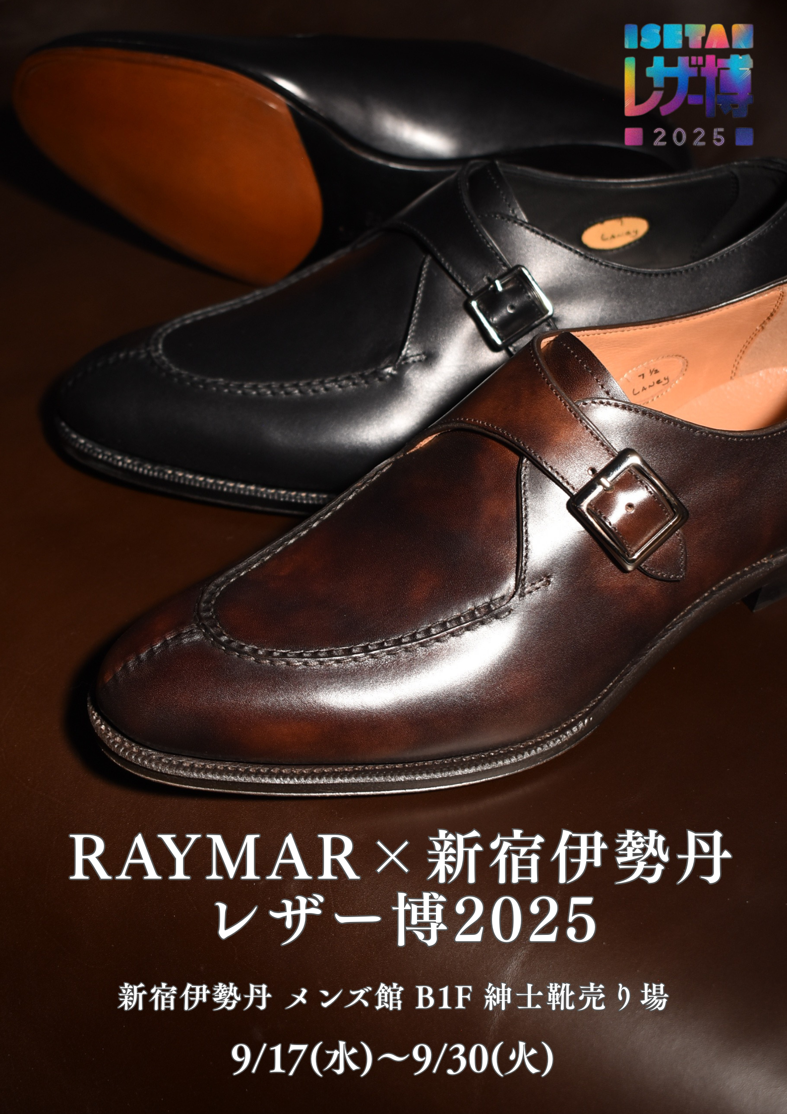 | イベント内容 | ◆レザー博2025 出店のお知らせ◆ 今年もこの季節がやってまいりました。 「レザー博2025(旧・靴博)」が新宿伊勢丹にて開催されます。 有難いことに昨年に続き、今年も弊社RAYMARは出店させていただくこととなりました。(7年連続出店!) これもひとえに、日頃より応援してくださる皆さまのおかげです。心より御礼申し上げます。 ◆出店モデルについて◆ 今回のイベントのために、特別に3型のスペシャルモデルをご用意いたしました。 使用する革は、イタリア・ILCEA社のスムースレザー「SETANIL(セタニール)」、そしてZONTA社の美しい斑模様を持つ「MUSEUM CALF」。RAYMARの技術とこだわりを注ぎ込んだ珠玉のラインアップです。 🔹 アデレード DeanⅡ 革:ILCEA SETANIL(ブラック) 製法:ハンドソーンウェルテッド 九分仕立て ソール:レザーソール(半カラス/ヒドゥンチャネル) 価格:59,000円(税込) --- 🔹 スキンステッチUチップ Laney 革:ILCEA SETANIL(ブラック)/ZONTA MUSEUM(ダークブラウン) 製法:ハンドソーンウェルテッド 九分仕立て ソール:レザーソール(半カラス/ヒドゥンチャネル) 価格:66,000円(税込) --- 🔹 ドレススニーカー Thomas 革:スムースレザー(ブラック/ホワイト) 製法:サイドマッケイ製法(オパンケ) ソール:VIBRAM カップソール 価格:33,000円(税込) ------- これらは「これまでのRAYMARを超える一足」を目指し、職人たちと共に丹念に仕立てた特別モデルです。ぜひ会場にてお手に取ってご覧ください。 ※その他にも複数の定番モデルをご用意しております。 ◆ご来場の皆さまへ◆ 期間中は、私たちRAYMARスタッフも売り場に立たせていただきます。 ぜひお気軽にお立ち寄りいただき、靴を実際にご覧いただければ幸いです。 皆さまのご来場を心よりお待ちしております。 |
