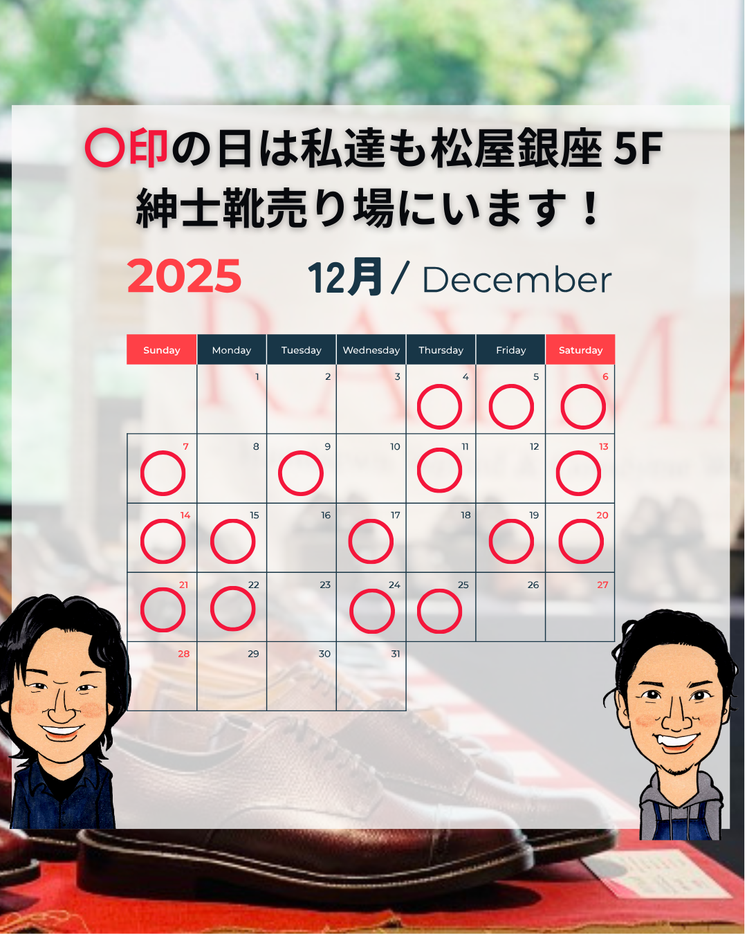 | 開催場所住所 | 銀座松屋 5F 紳士靴エリア 住所:東京都中央区銀座3丁目6-1 |